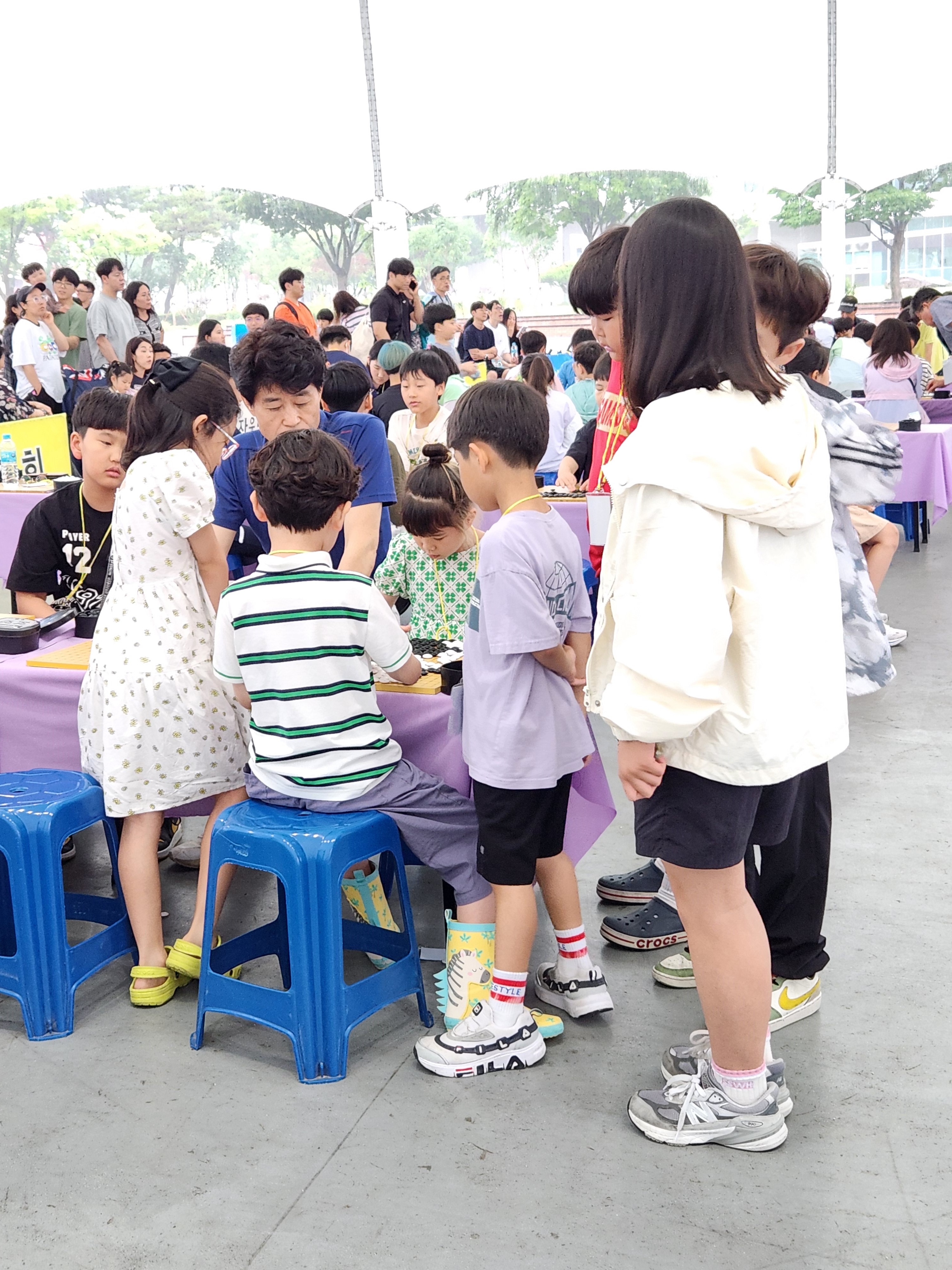 참가한 8살 손녀가 다 끝난 아이들이 둘러싸