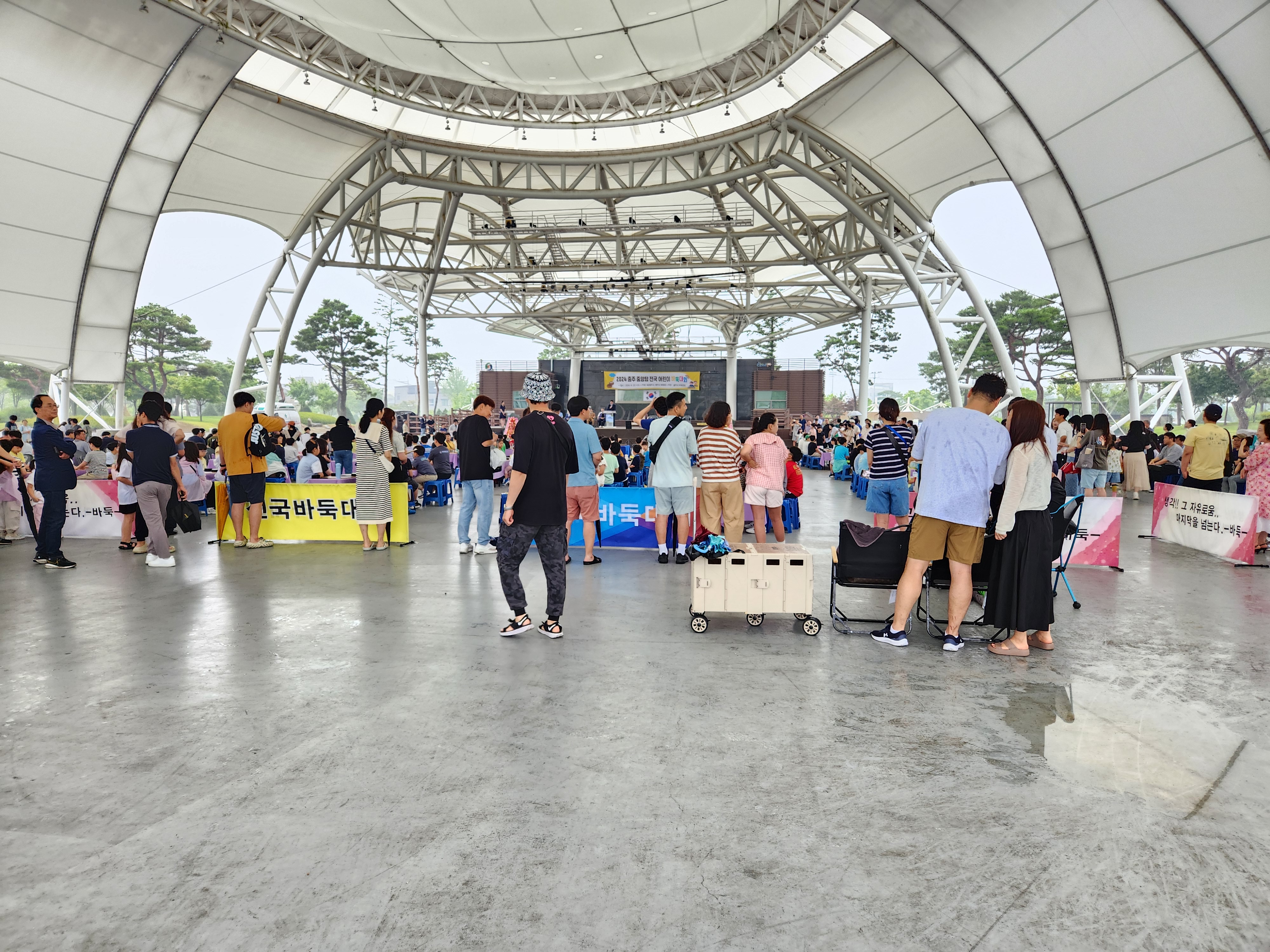 탄금공원 내 야외공연장에서 비가 억수 같이