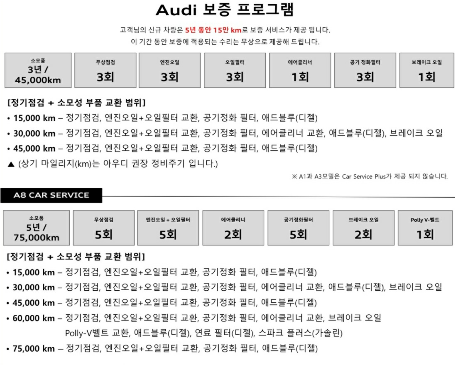 - 대상차량 : 아우디코리아에서 공식 딜러사를 통해 판매하는 모든 21년식 모델부터 적용