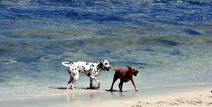 어떻게 알게된....aussi가족과 해변을 찾아....제가 예뻐하는 달마에게 물어오라 공을 던지면...