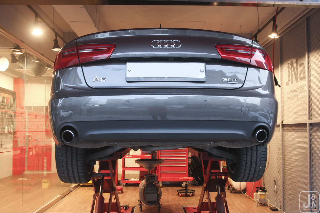 아우디 A6 3.0TFSI 엔진오일양은 6.5L이고 총 작업시간은 70분 소요되었습니다.