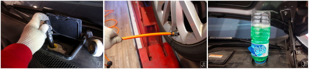 엔진오일 교환 시 차량 점검도 같이 하고 있습니다. 타이어 공기압 체크는 계절마다 한 번씩 보는 게 좋고 브레이크액의 권장주기는 2년 또는 4만 km이나 운행 환경에 따라 다소 차이가 날수 있습니다. 평균적으로 1년에 1.5% 정도의 수분이 증가한다고 보고 있으며 농도가 3% 이상 될 경우 교환을 권유 드리고 있습니다.