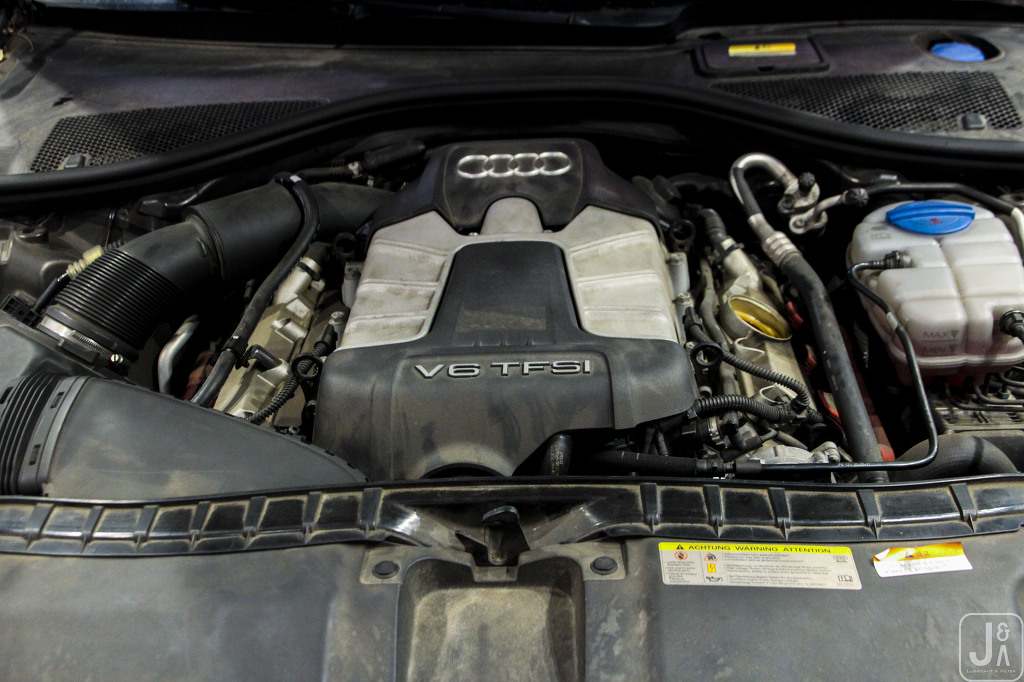 아우디 3000CC 가솔린 차량에 들어가는 3.0 V6 TFSI 엔진입니다. 원활한 작업을 위하여 엔진오일 주입 캡을 탈거합니다. 엔진커버는 제거할 필요가 없습니다.