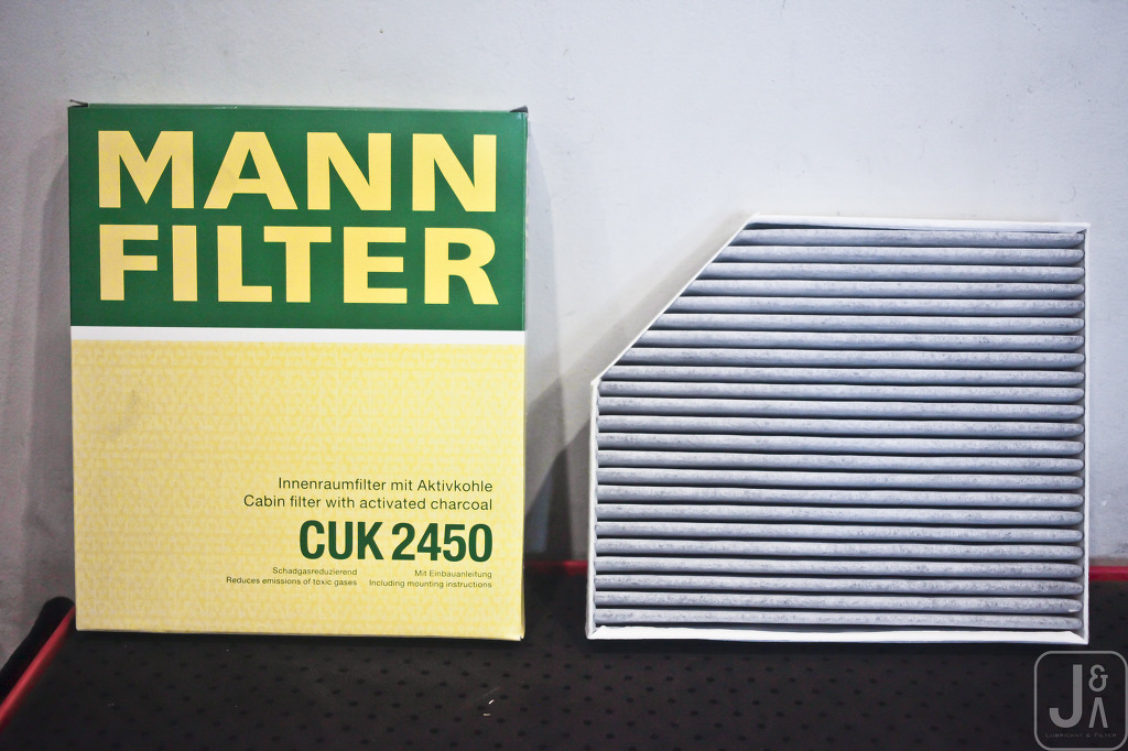 고객님의 요청으로 에어컨 필터도 같이 교환 진행됩니다. 에어컨 필터와 에어 필터는 교환 주기가 별도로 있기 때문에 엔진오일 교환과 동시에 교환하는 것은 센터나 일부 정비소에서 진행되는 것이므로 꼭 같이 교환하실 필요는 없습니다. 에어컨 필터는 활성탄 필터 기준 6~8개월 사이에 한 번씩 교환해 주는 것이 좋습니다. 에어컨 필터는 MANN 제품의 활성탄 필터로 교환 진행해드렸습니다.