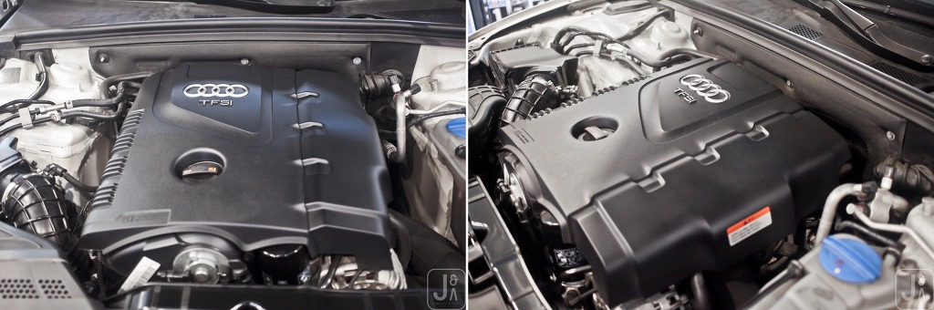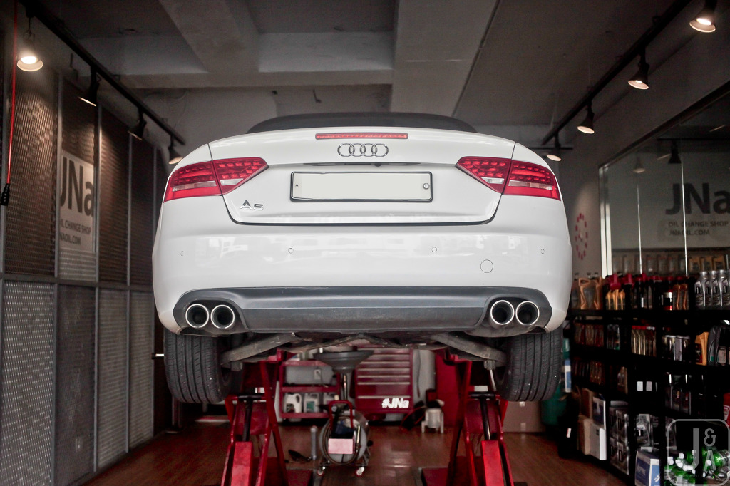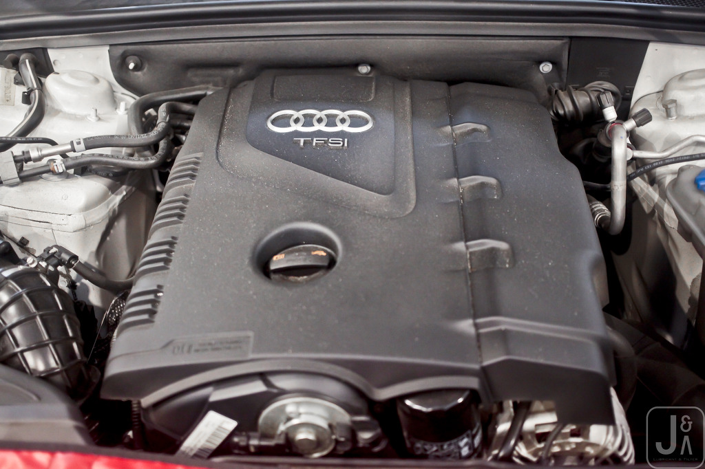 아우디 A5 2.0 TFSI의 엔진오일량은 5리터고 작업 시간은 약 60분 소요되었습니다.