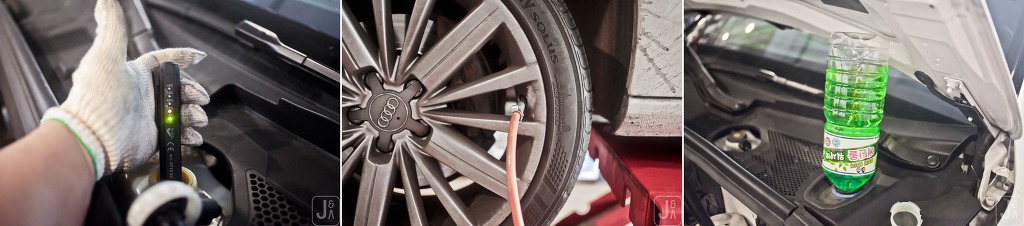 엔진오일을 교환하면서 차량 상태를 전반적으로 체크하고 있습니다. 점검을 통해 누유나 브레이크 패드, 타이어 상태 등 이상이 있는 부분은 고객님께 고지해드리고 있습니다. 차량 점검 결과 브레이크액의 수분량 1%로 양호한 상태였고, 타이어의 트레드는 약 20% 정도 남아 있었습니다.