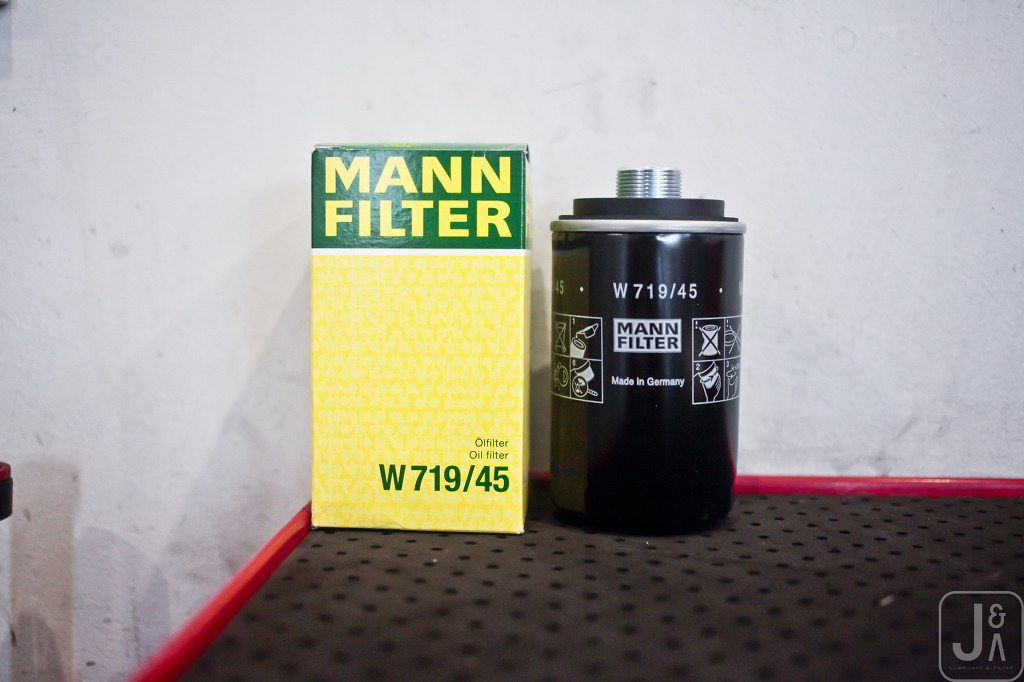 엔진오일 필터는 캔 타입으로 MANN 제품을 사용하였으며, 상부에서 작업이 가능합니다. 캔 타입 오일필터들은 대부분 단 제품으로 카트리지와 다르게 새 엔진오일 필터와 같이 동봉되어 있는 제품이 없습니다. 원활한 엔진오일 배출을 위해 드레인이 모두 끝난 후에 엔진오일 필터를 체결합니다.