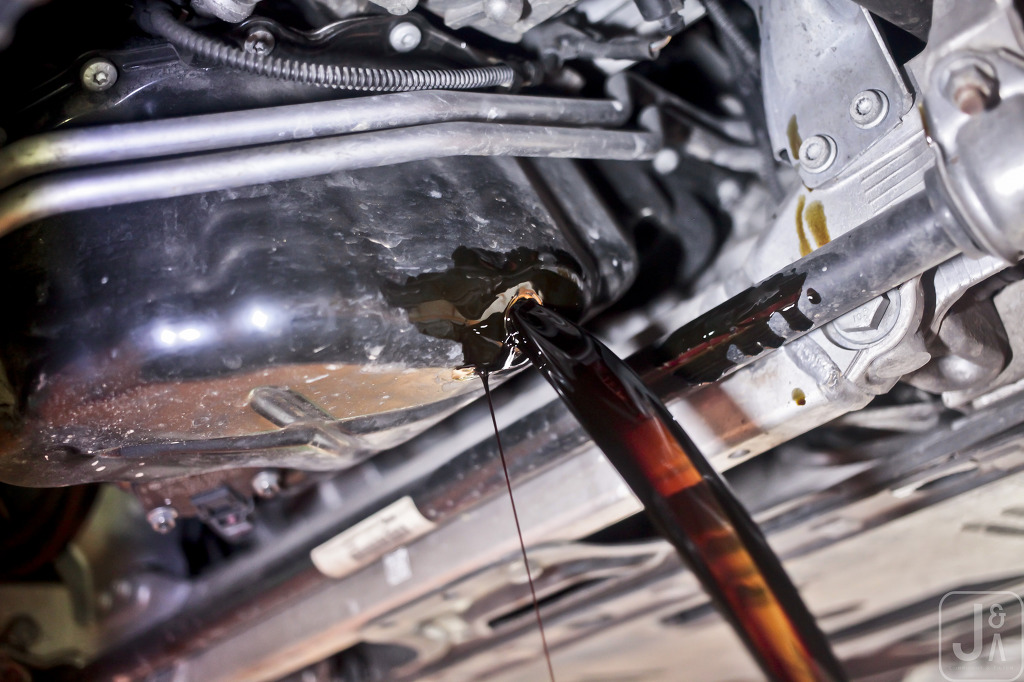엔진오일 드레인을 시작합니다. 엔진오일 드레인 방향은 대각선 방향으로 엔진오일을 자유낙하 방식으로 시간을 두어 충분히 드레인을 후 석션 장비를 이용하여 잔유를 제거합니다. 생각보다 잔유가 많이 남는 엔진오일 팬입니다.