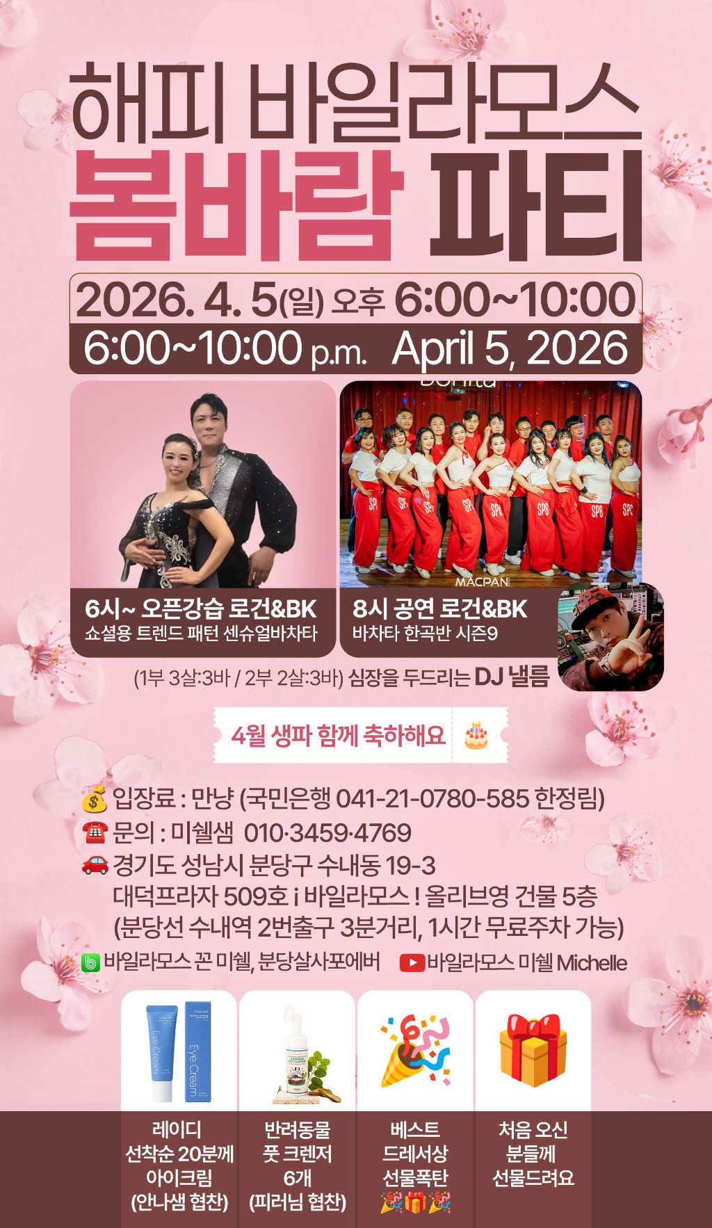 [분당/수내] 4/5(일) 6시~봄바람파티🌸🌼🌸 분당의 핫플레이스 바일라모스에 만나요🎵🎶 작성자미쉘|작성시간26.04.02|조회수2 목록 댓글 0 글자크기 작게가 글자크기 크게가 다음검색 현재 게시글 추가 기능 열기 북마크 공유하기 신고 센터로 신고 댓글 댓글 0 댓글쓰기 답글쓰기 댓글 리스트