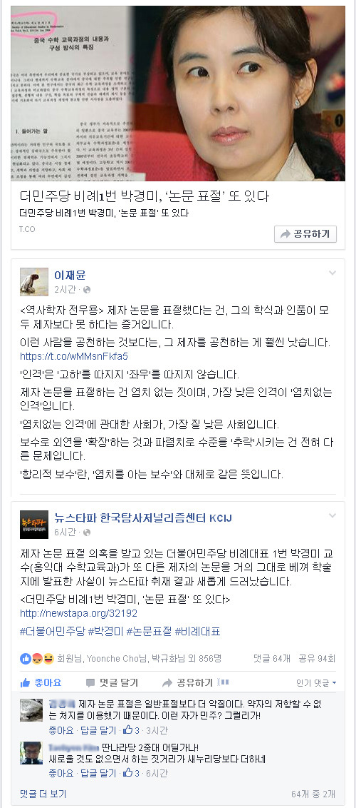 ◈ 더민주당 비례1번 박경미, ‘논문 표절’ 또 있다