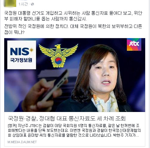 ◈ 국정원·경찰, 정대협 대표 통신자료도 세 차례 조회