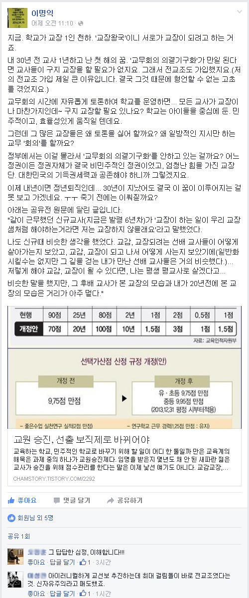 ◈ 교원 승진, 선출 보직제로 바뀌어야