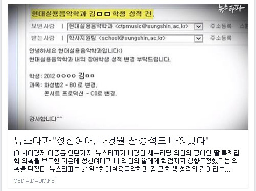 ◈ 뉴스타파 "성신여대, 나경원 딸 성적도 바꿔줬다"