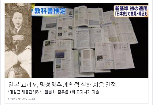 ◈ 일본 교과서, 명성황후 계획적 살해 처음 인정