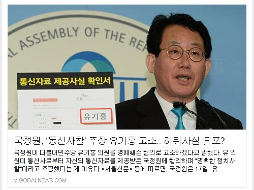 ◈ 국정원, ‘통신사찰’ 주장 유기홍 고소.. 허위사실 유포?