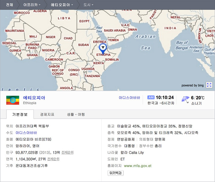 아프리카의 북동부에 위치한 에디오피아는 지도를 보면 홍해를 사이에두고 예멘과 마주보고 있습니다.