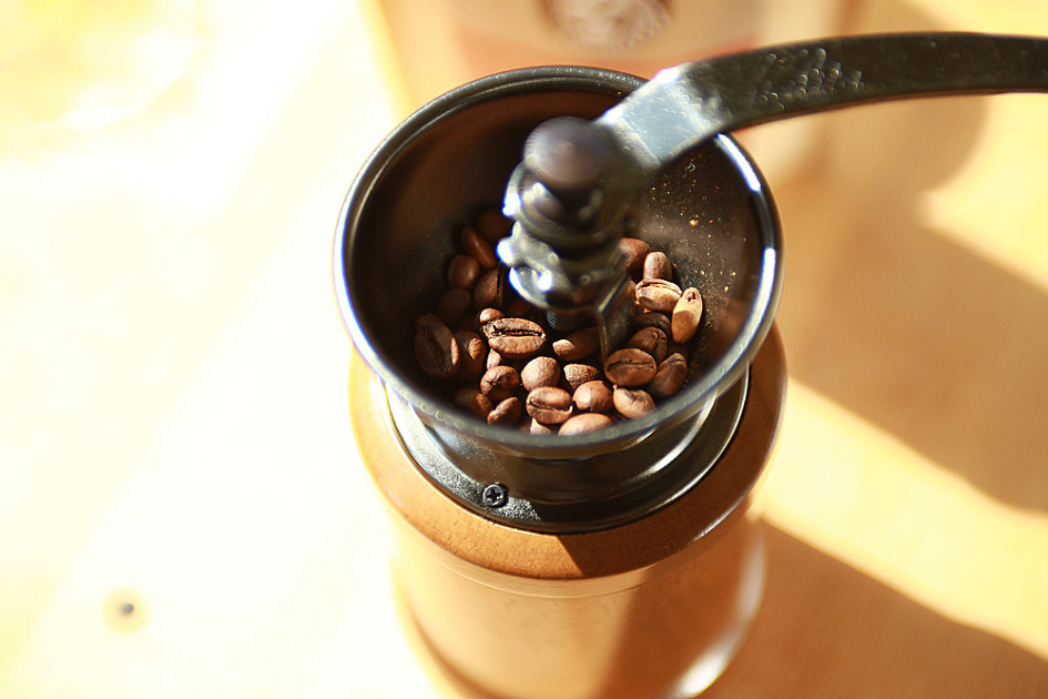 자 드립 한잔 분량인 15g정도만 갈아 봅니다. 10g짜리 계량스푼으로 소복히 담으시면 15그램정도 나옵니다.
