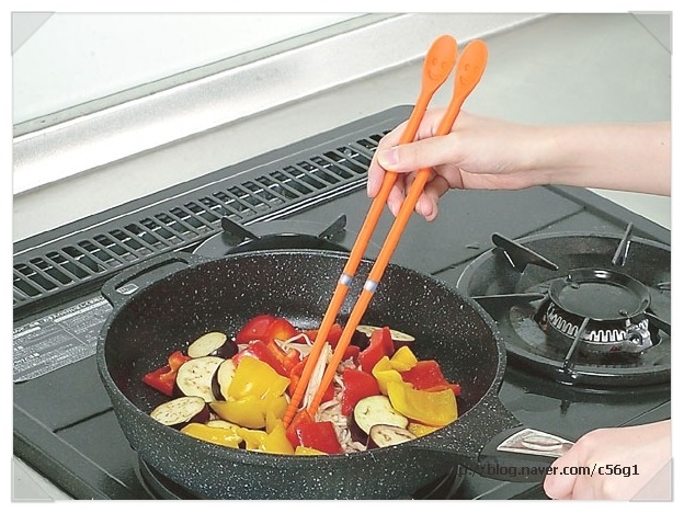 3. 요리를 만들거나 야채 나물류 등을 접시에 담을 때 쓰는 긴 젓가락을