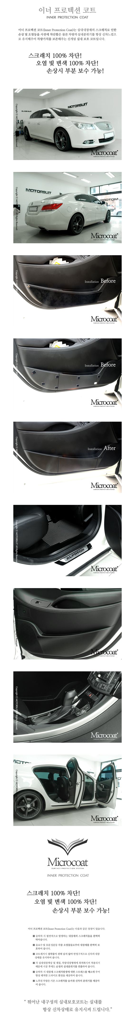 실내내장재의 스크래치로 인한 손상 및 오염등을 강력하게 차단함은 물론 차량의 실내분위기를 항상 신차느낌으로 유지해주어 차량의 가치를 보존해주는데 주 목적이 있습니다.