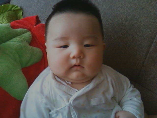 내가 누군지 아시겠어요?^_^ 3개월되는날 오전 11시에 머리카락을 잘랐습니다. 앉아있는 거북한 자세로 무뚝뚝한 표정입니다. 뒤로 벌러덩 넘어지기직전입니다. 뚝배기같죠?^^ 아니 해병대입대합니다~