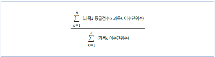 ▶ 성적 산출공식(합산 후 소수점 셋째 자리에서 반올림하여 둘째 자리까지 반영)