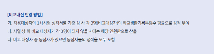 성적을 기준으로 다음과 같은 방법을 적용하여 비교내신 반영