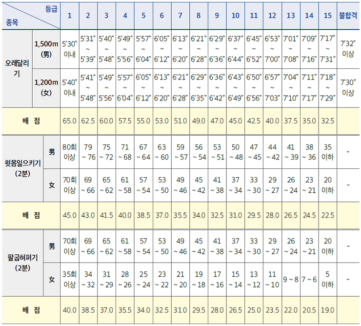체력검정 기준