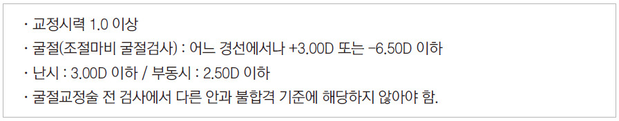 굴절교정술을 본인 비용으로 시행해야 함