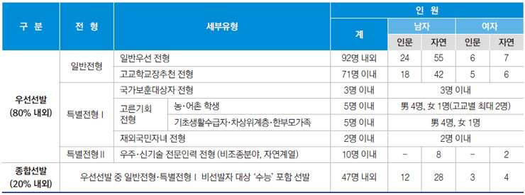 모집전형 및 선발인원