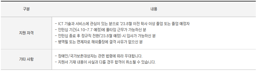※ 인턴십 종료 시점 전환 심사를 통해 정규직 채용 여부가 최종 결정됩니다.