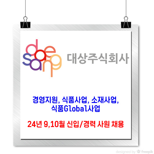 * 대상 채용 : https://daesang.recruiter.co.kr/career/jobs/30768