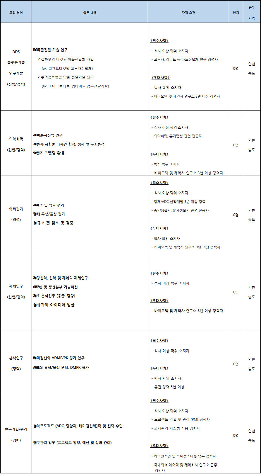 1) 석사 이상 모집 분야 (R&D)