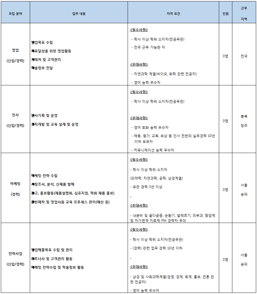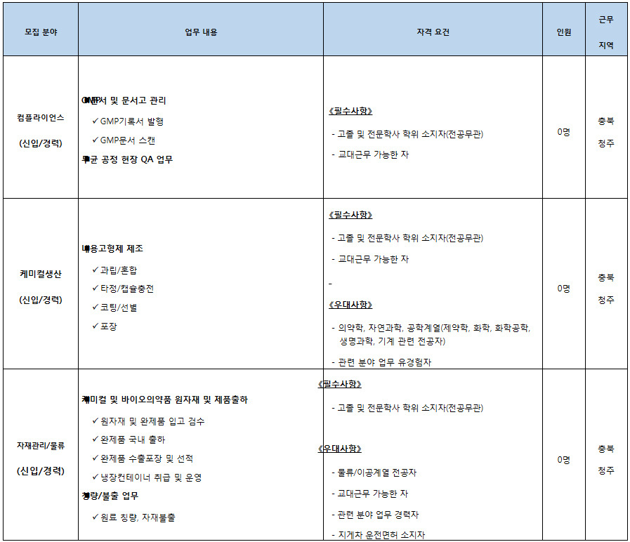 - 접수 방법 : 셀트리온제약 채용사이트 (*자기소개서 필수 작성) ※ E-mail 접수는 받지 않습니다.