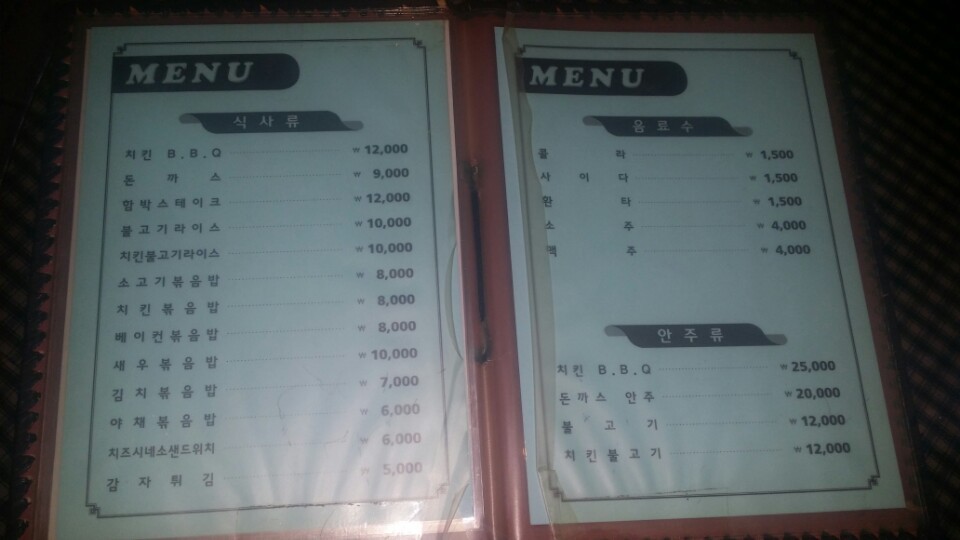 아~~옛날 메뉴판의 모습입니다. 얼마만인가요^^20년 전 레스토랑 갔을 때 기억이 새록새록 떠오릅니다.