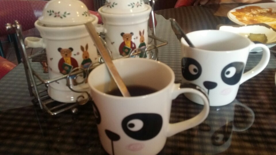 식사가 끝나고 디저트로는 커피가 나옵니다. 머그잔이 귀엽네요.
