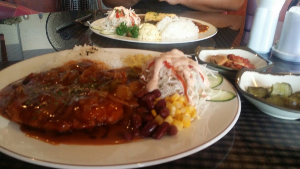 돈까스와 함박스테이크 요렇게 두 개를 시켜봅니다. 요건 돈까스~~