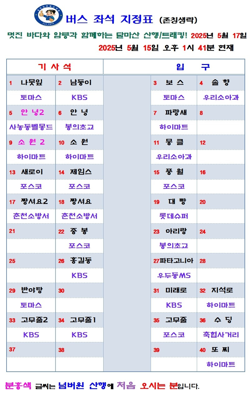 산행대장 대빵 올림