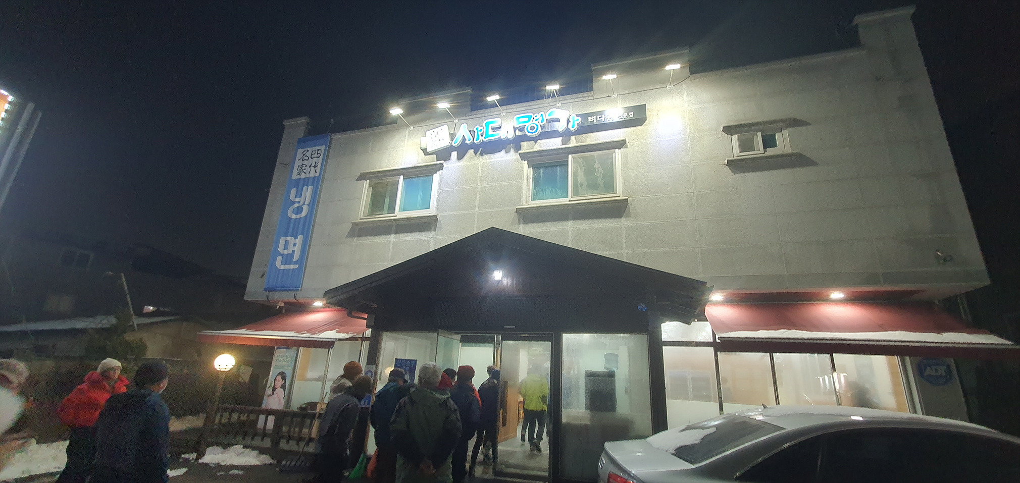 ㅇ 선자령 산행 후 저녁식사는 홍천 "사대명가뼈다귀해장국"에서 전골을 드십니다.