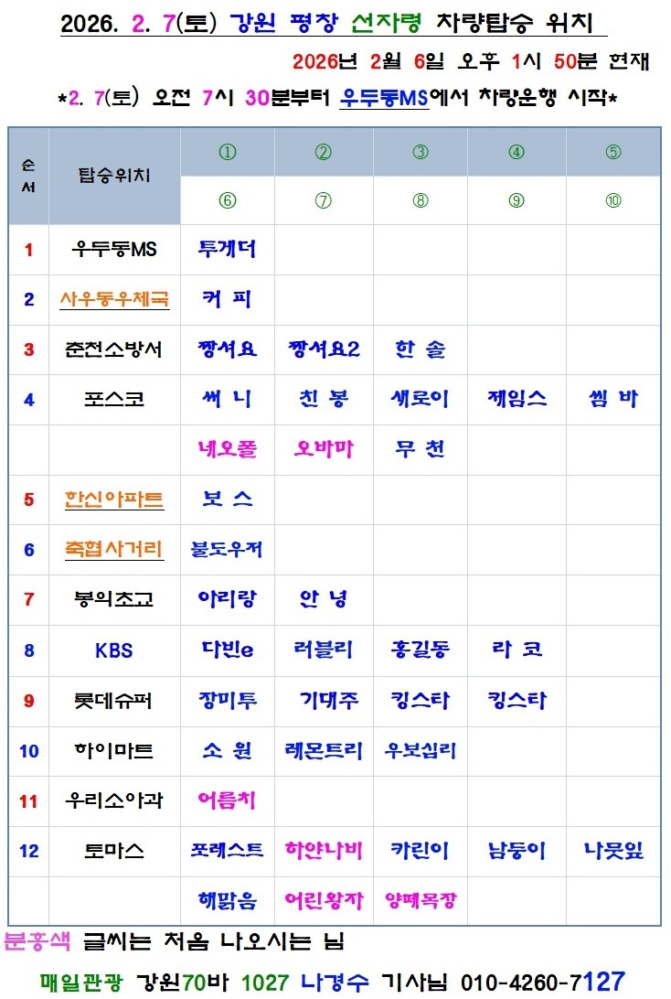 * 매일관광 강원70바 1027호, 나경수기사님 010-4260-7127