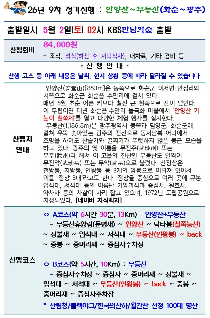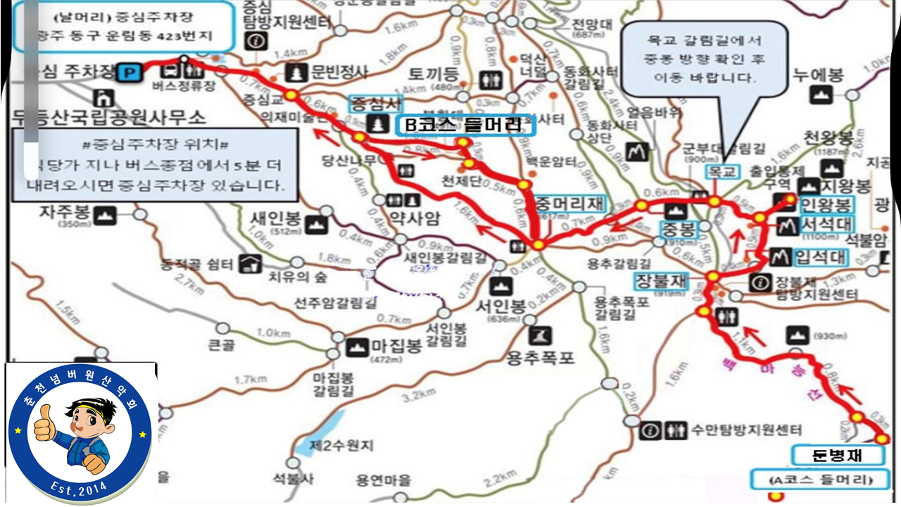 ㅇ 이번 무등산 산행 시 공군부대로 통제되었던 무등산 3개봉(천왕봉,지왕봉,인왕봉) 중 23년 9월 새롭게 개방한 "인왕봉"을 다녀올 수 있습니다.