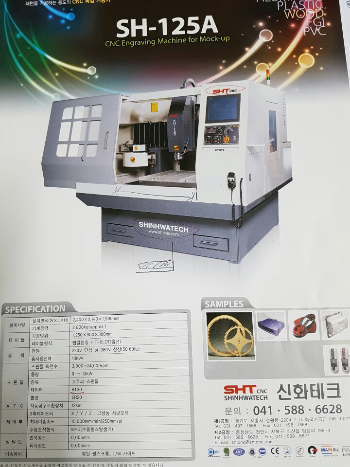 5. 옵션사항 :스핀들15KW 15.000RPM,BT40,AC서보모터 미쓰비시,자동높이센서외기타