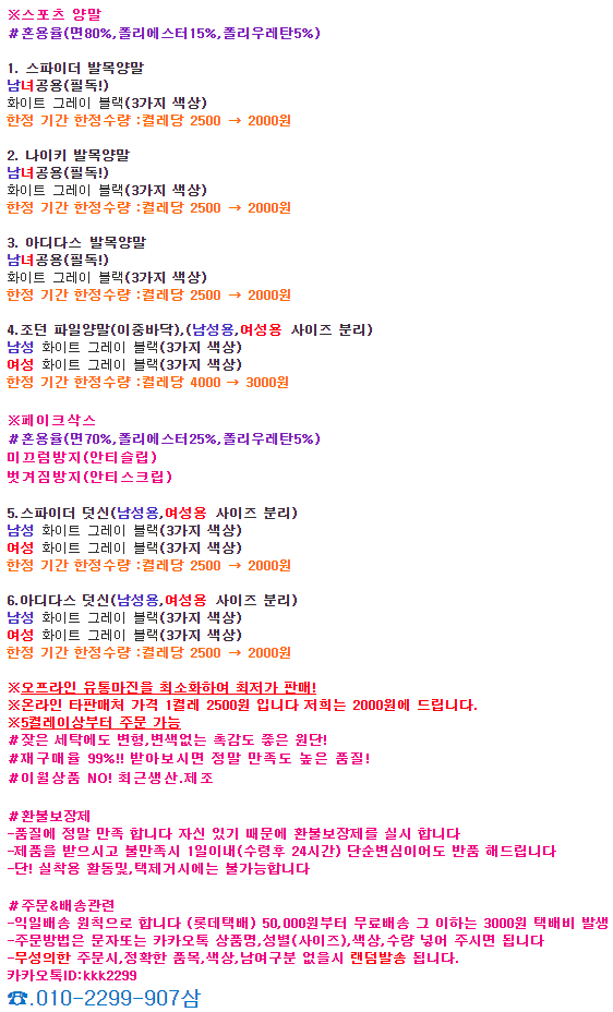 스파이더,나이키,조던,아디다스 스포츠양말,덧신 판매 합니다. 작성자가을단풍날|작성시간19.09.18|조회수274 목록 댓글 0 글자크기 작게가 글자크기 크게가 다음검색 현재 게시글 추가 기능 열기 북마크 공유하기 신고 센터로 신고 댓글 댓글 0 댓글쓰기 답글쓰기 댓글 리스트