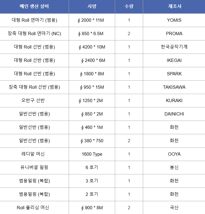 당사는 2008년 창립 이래 50년 넘게 국내 산업용 롤 가공분야에서
