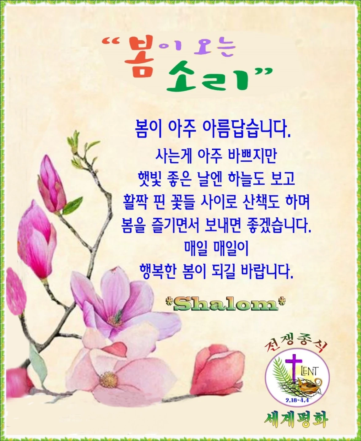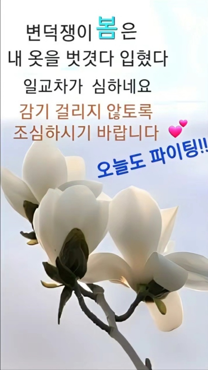꽃모닝~ 작성자프리티 경기여|작성시간26.03.27|조회수36 목록 댓글 1 글자크기 작게가 글자크기 크게가 ㅡ수집자료ㅡ 다음검색 현재 게시글 추가 기능 열기 북마크 공유하기 신고 센터로 신고 댓글 댓글 1 댓글쓰기 답글쓰기 댓글 리스트 작성자아미산(홍주 남) | 작성시간 26.03.28 꽃모닝 ♡ 댓글 전체보기