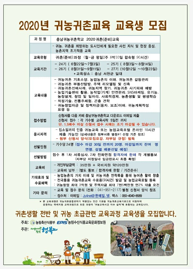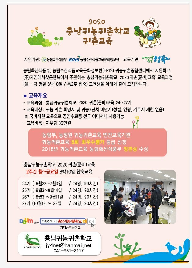 2020년 자연에서찾은행복 충남귀농귀촌학교