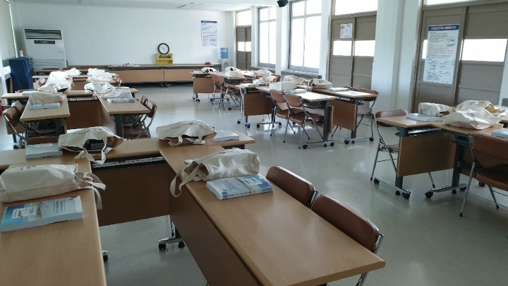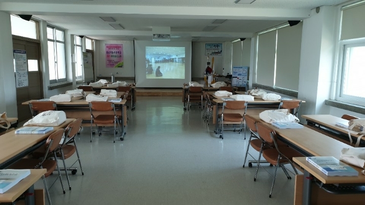 6명씩 앉던 자리 4명씩 앉도록 배치했어요