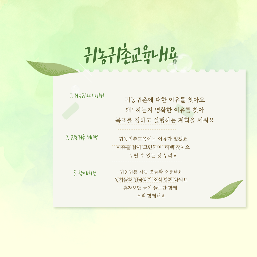 귀농귀촌 이유찾기 부터 귀농정책자금 사업계획 작성까지 체계적인 접근을 통한