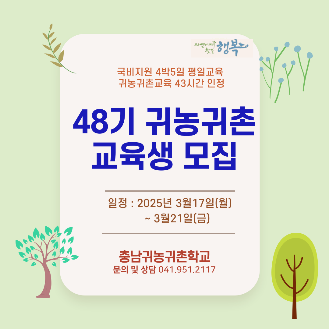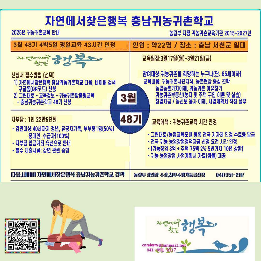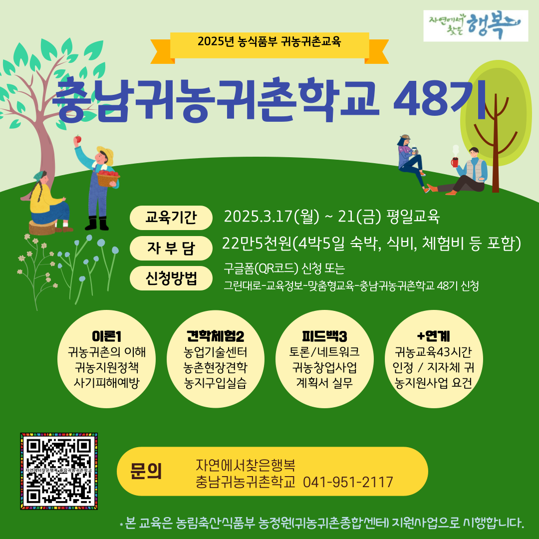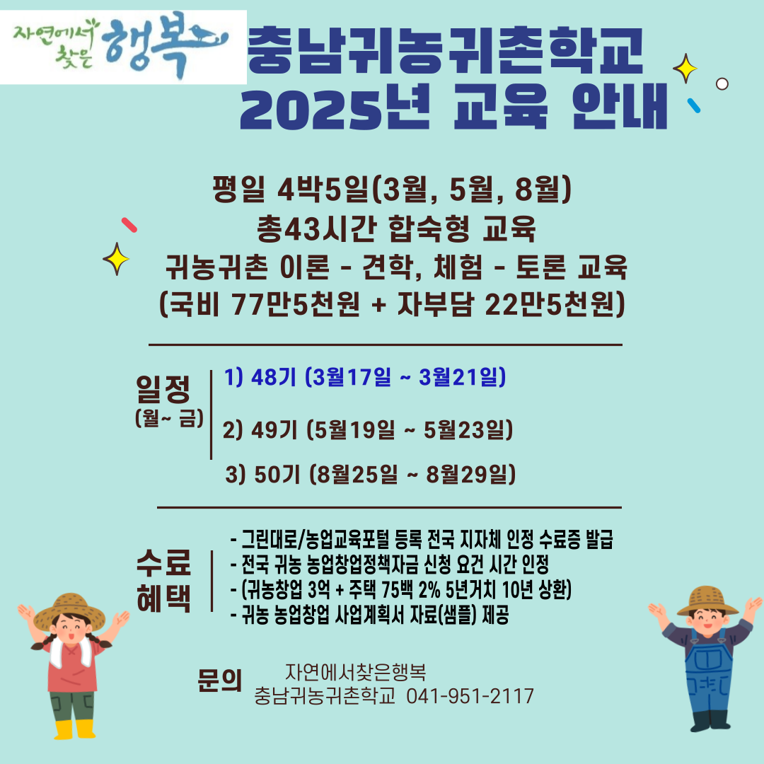 자연에서찾은행복 충남귀농귀촌학교 2025년 교육생 모집 안내
