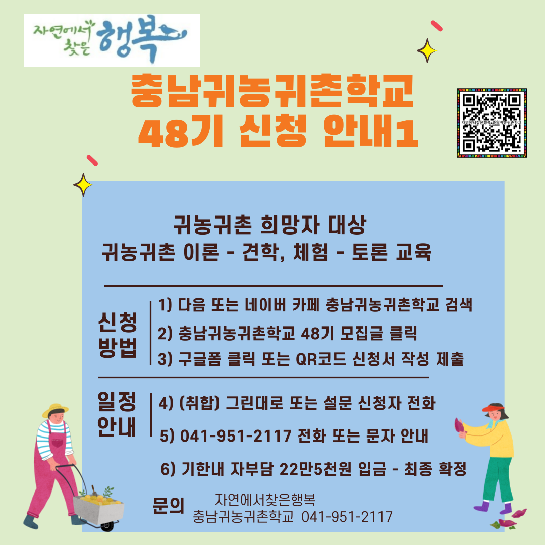 귀농귀촌 연착륙을 위해 함께하실 48기 교육생 22분을 모십니다.