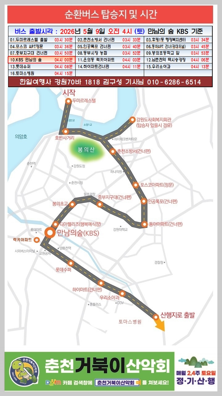 < 춘천 거북이 산악회 순환버스 탑승 장소 안내 >